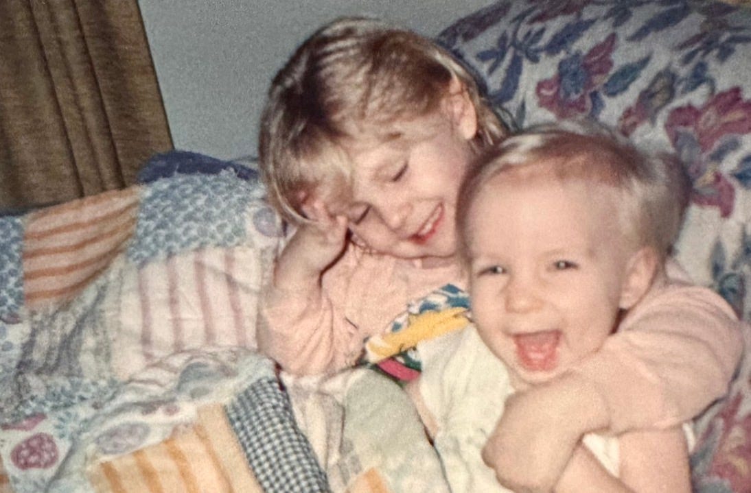 This fall, when my brother started chemo, all I could think about was how our dad taught us how to swim. We never had any true professional lessons or classes. In fact, what I remember is the second the sky started turning a little (just a little) green in the summer, we’d march down the block to Lake Michigan and watch the waves grow taller and taller. Then, we’re in the water and our dad is on the shore yelling, “swim back! Swim back!” Somehow, we did. I don’t remember any inkling of fear. Just pure adrenaline and fun, screeching as the waves smashed our little legs into the lake bottom. We swam in. I can still look over and see Elliott’s big eyes and dimples grinning back at me. We’re here because we’re here because we’re here because we’re here.